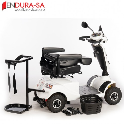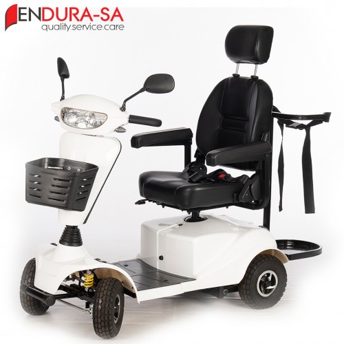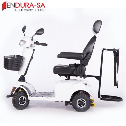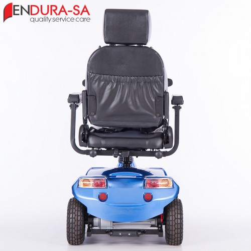 Special Features Strong heavy duty mobility scooter with a weight capacity of 160 kg. Front & rear suspension. Enough leg room and short turning radius. Flip back, width & height adjustable arm rests, swivel & adjustable seat, LED lights, indicators & horn. Manual recline function.