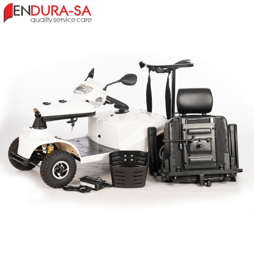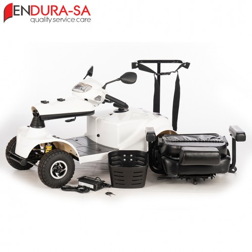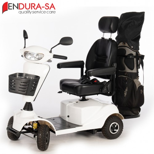 Endura LandCruiser Golf Scooter, with its fashionable design, is a strong heavy-duty Golf Cart with a weight capacity of 160 kg. Front & rear suspension. Enough legroom and short turning radius. Flip back, width & height adjustable armrests, swivel & adjustable seat, LED lights, indicators & horn. The seat has a manual recline function. This unit is great to drive and cheap to maintain compared to any other golf cart or brand in the market.