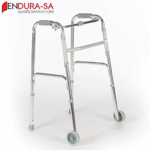 The Endura Wheelie Pulpit walker is a Powder coated aluminium frame (Folding), with a height adjustable feature and front wheels for a smoother walk.
