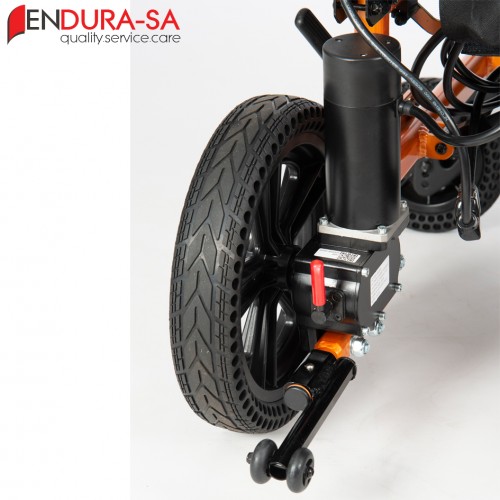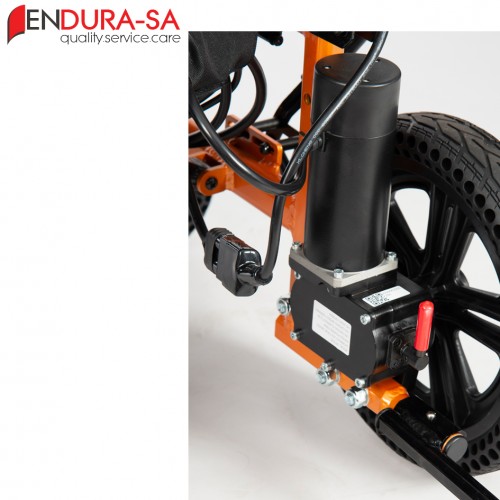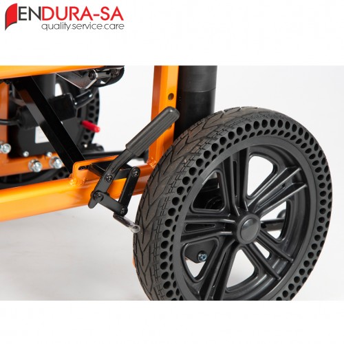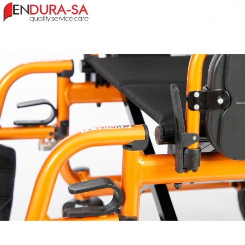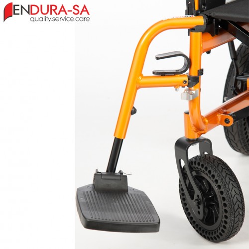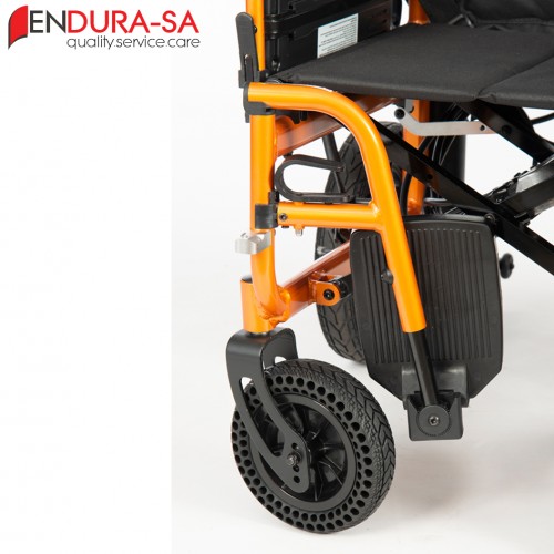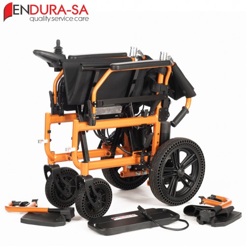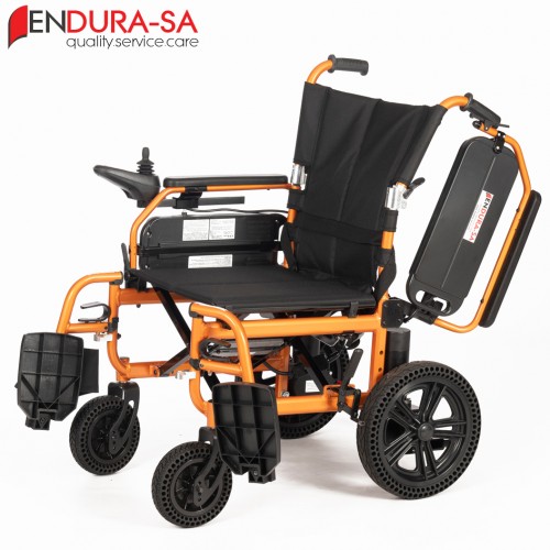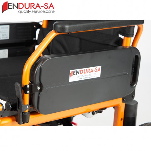 Heavy-duty 20-inch (51cm) Alulithium electric wheelchair featuring advanced lightweight components. Quality equipment by ENDURA-SA South Africa.