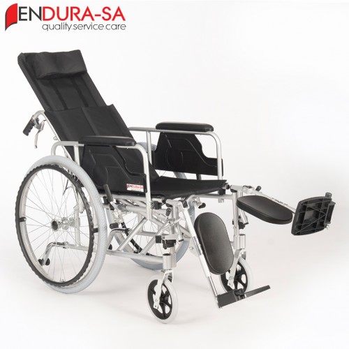 Premium 16-inch Alulux Recliner Wheelchairs in South Africa. Aluminium frame with full recline and elevating footrests by ENDURA-SA.